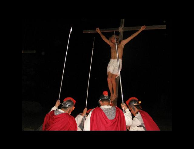 After hanging Him on a cross, soldiers gamble for Jesus' clothes